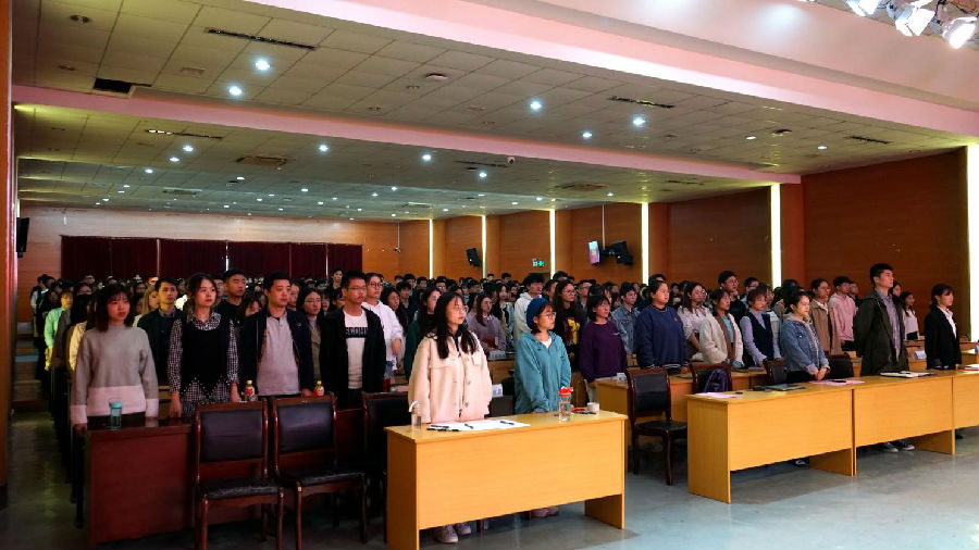 党建班开班典礼在雄壮的国歌声中拉开帷幕。首先,由党建班班长周颖作第一期党建班工作计划汇报,随后,党务秘书张鸣宣读了2020年10月份新发展党员名单以及2019年上半年发展预备党员转正名单。